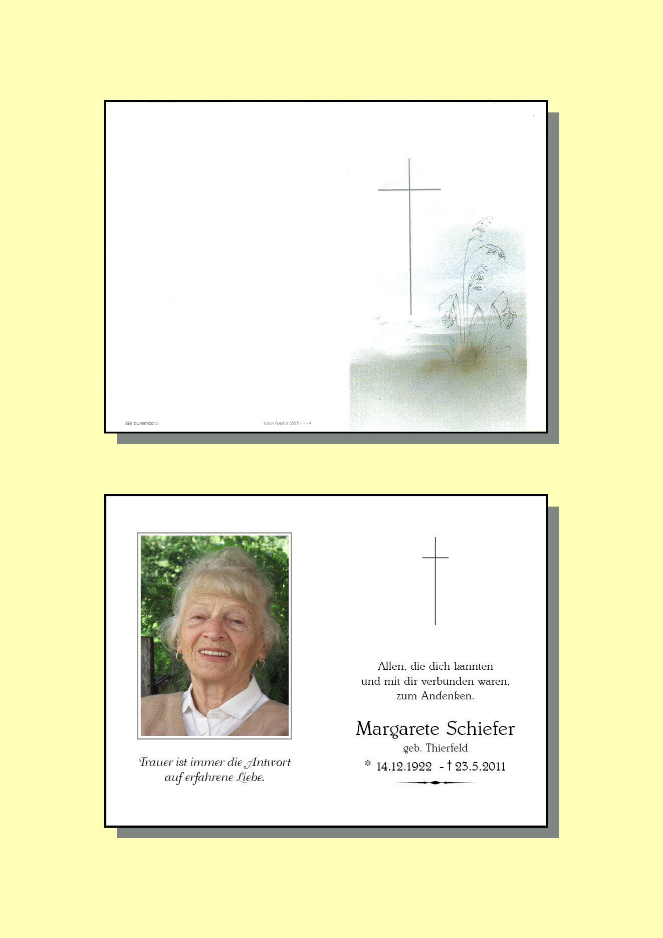 13.12.1901 23.05.2011 Lechaschau Margarete Schiefer Action Parte Sterbebild Gedenkkerzen Kondolenzen Danksagung Parte Sterbebild Gedenkkerzen Kondolenzen Danksagung Parte herunterladen Sterbebild herunterladen Gedenkkerzen für Margarete Schiefer 0 Einträge Kerze anzünden Ihre Gedenkkerze fürMargarete Schiefer Ihr Name* Farbe auswählen Ihre Nachricht oder Name* E-Mail-Adresse* Mit dem Klicken auf "Kerze anzünden" erklären Sie sich mit unseren Datenschutzbestimmungen einverstanden. Kondolenzbuch für Margarete Schiefer 0 Einträge Kondolenz verfassen Ihr Abschiedsgruß an Margarete Schiefer Ihr Name* E-Mail-Adresse* Ihre Nachricht* Mit dem Klicken auf "Gruß absenden" erklären Sie sich mit unseren Datenschutzbestimmungen einverstanden. Danksagung herunterladen