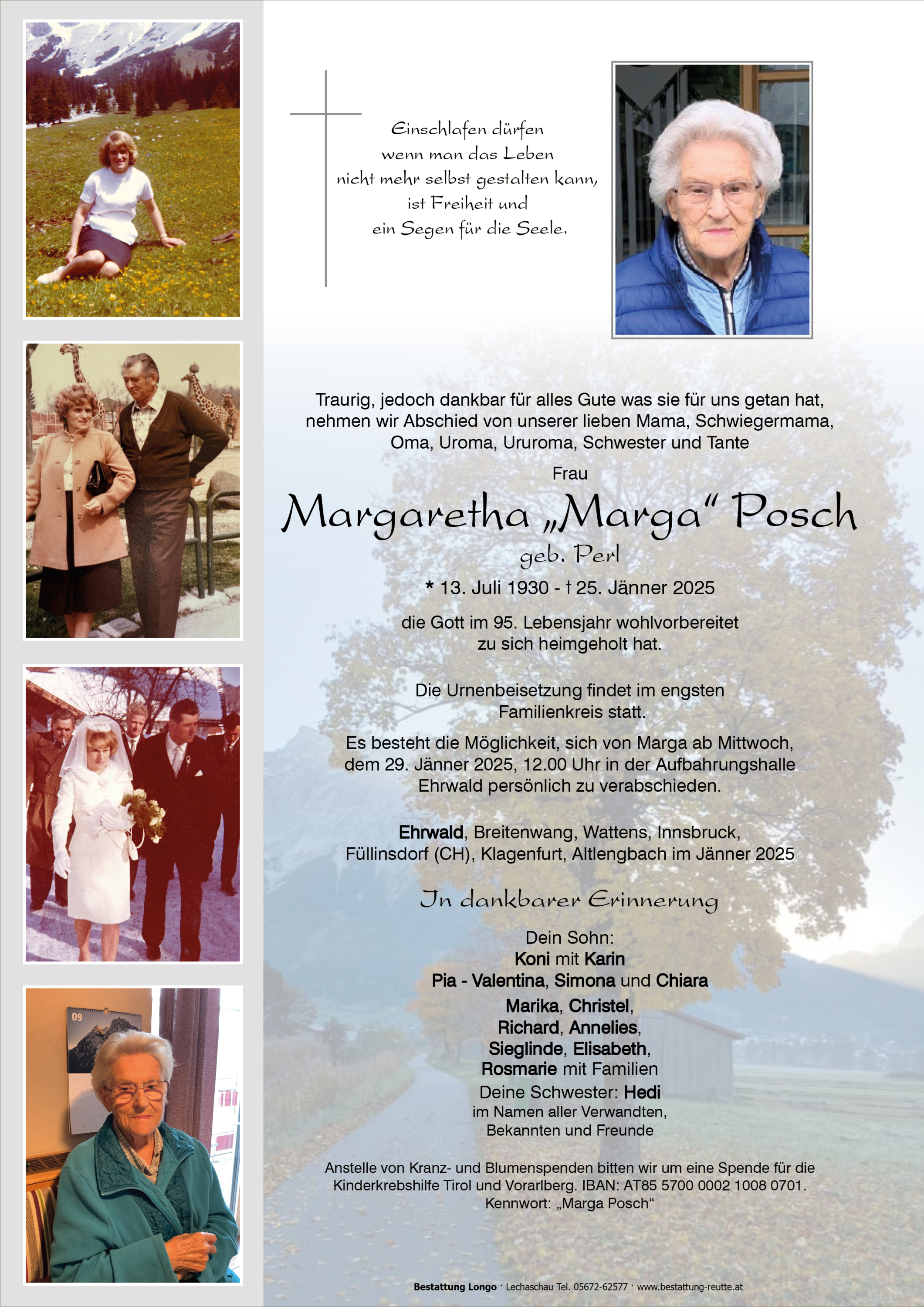 Aurichtige Anteilnahme zum Tod von Gretl entbieten euch
