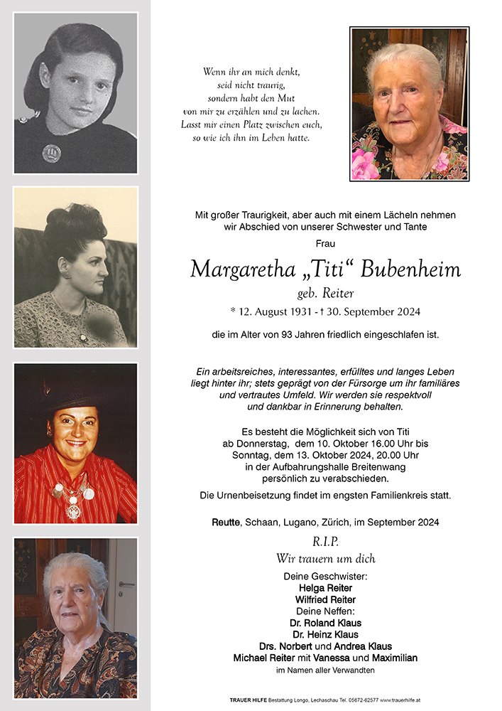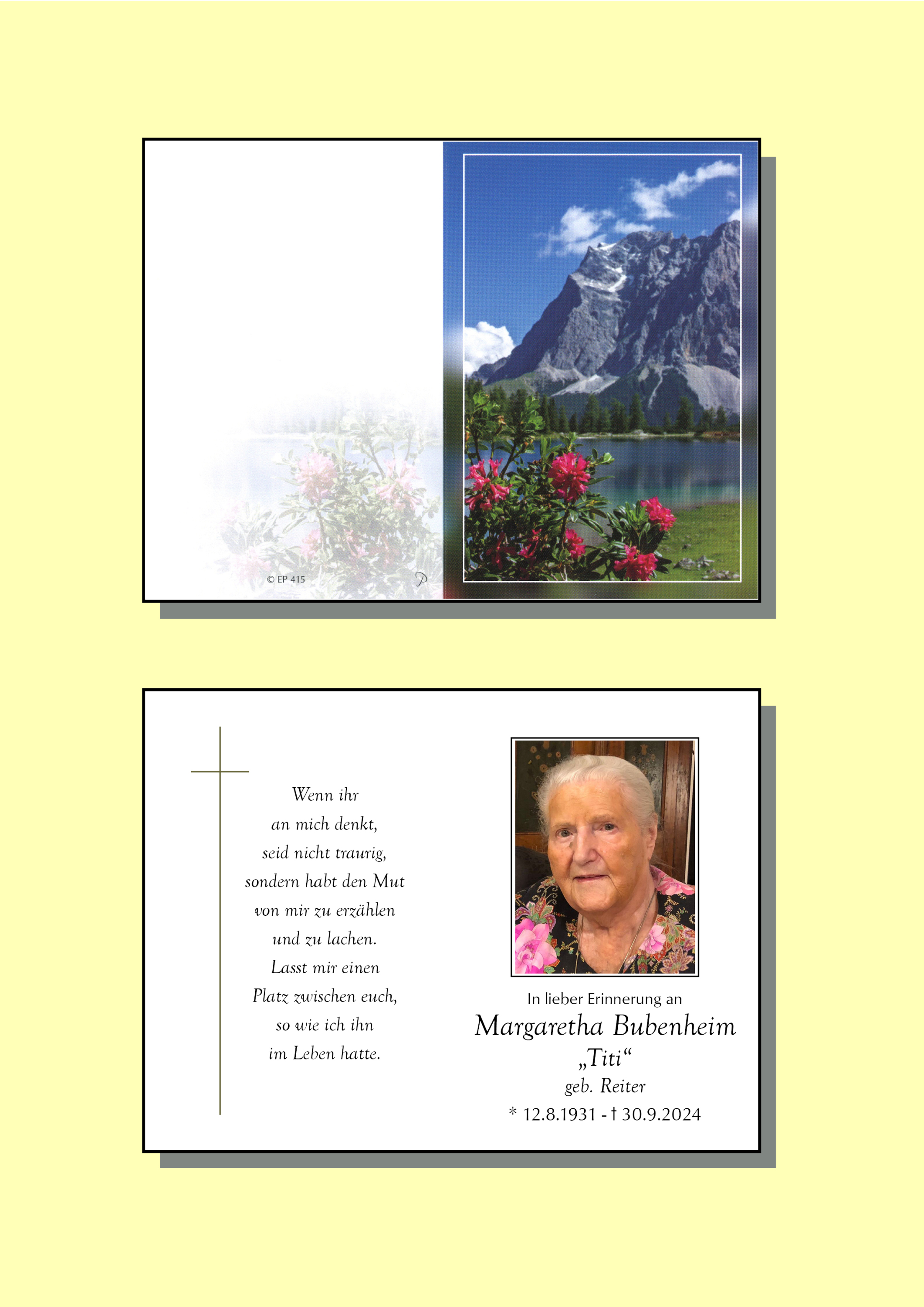 Kirsten und ich durften Frau Bubenheim leider nur einen kurzen Teil ihres Lebens begleiten! Es war aber eine sehr schöne Zeit …