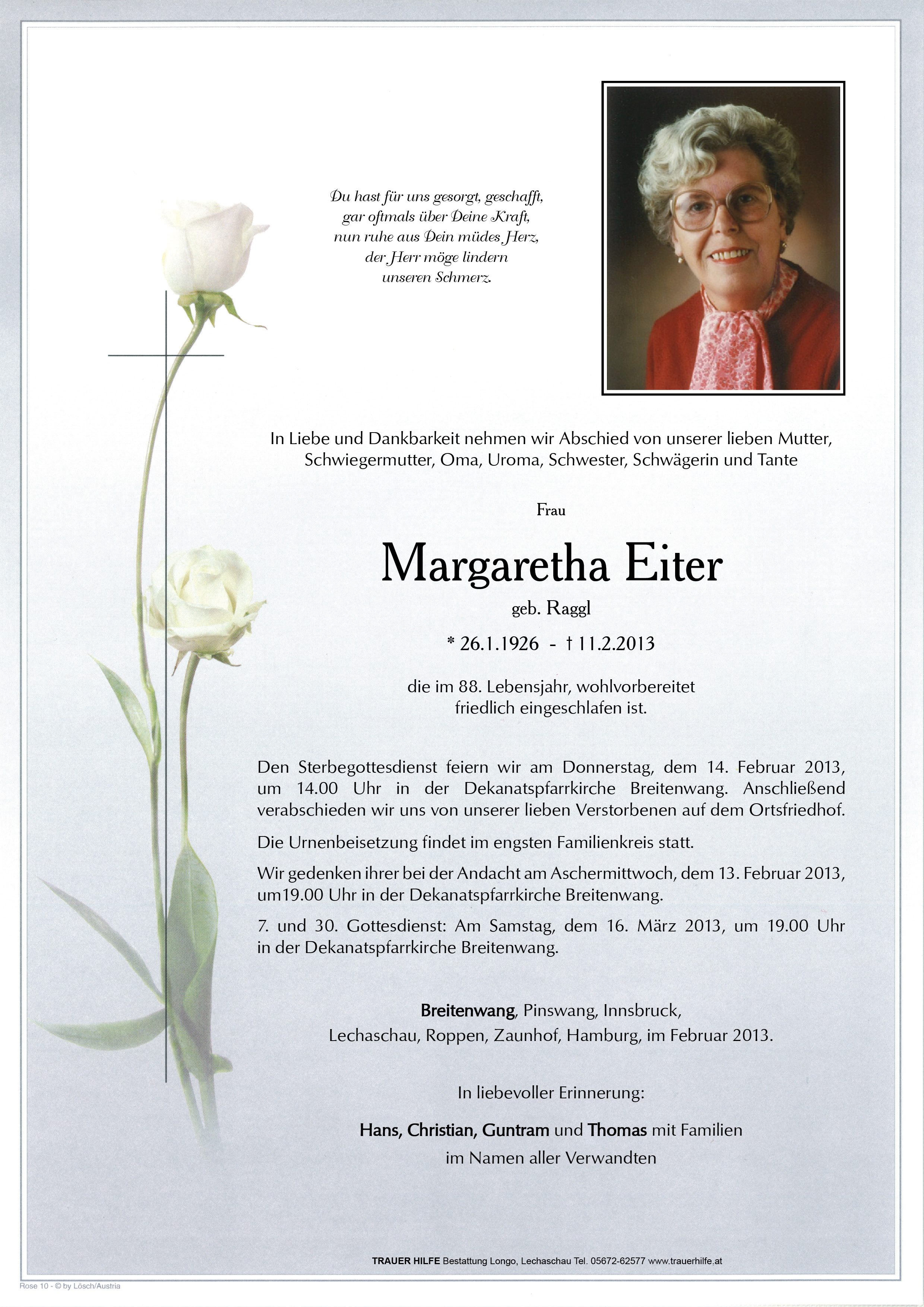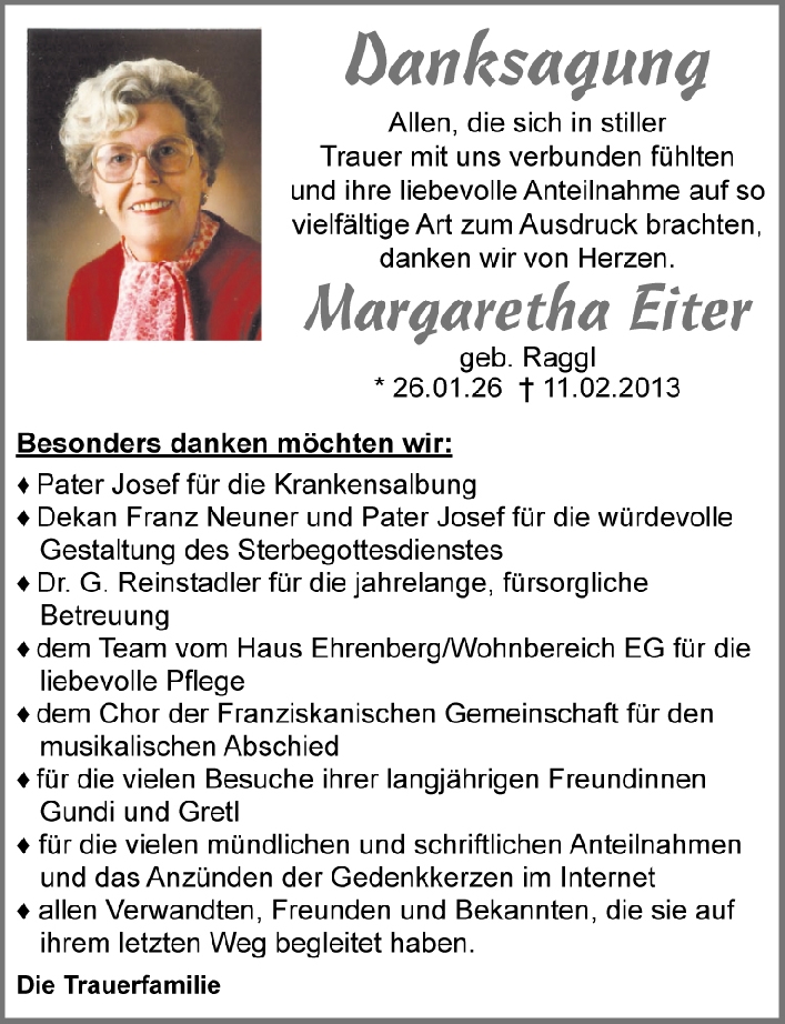 Kondolenzbuch für Margaretha Eiter