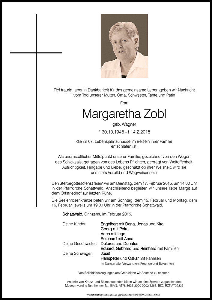 "Eine Stimme, die uns vertraut war, schweigt. Ein Mensch, der immer für uns da war, lebt nicht mehr. Vergangene Bilder ziehen in Gedanken vorbei. Erinnerung ist das Einzige, was bleibt."