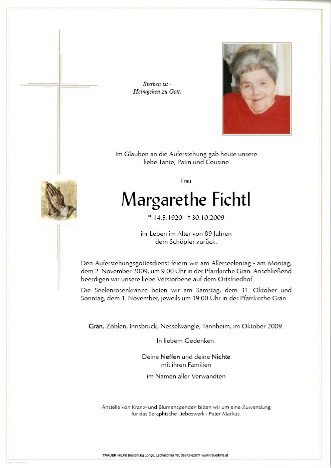 13.12.1901 30.10.2009 Grän Margarethe Fichtl Action Parte Gedenkkerzen Kondolenzen Parte Gedenkkerzen Kondolenzen Parte herunterladen Gedenkkerzen für Margarethe Fichtl 0 Einträge Kerze anzünden Ihre Gedenkkerze fürMargarethe Fichtl Ihr Name* Farbe auswählen Ihre Nachricht oder Name* E-Mail-Adresse* Mit dem Klicken auf "Kerze anzünden" erklären Sie sich mit unseren Datenschutzbestimmungen einverstanden. Kondolenzbuch für Margarethe Fichtl 0 Einträge Kondolenz verfassen Ihr Abschiedsgruß an Margarethe Fichtl Ihr Name* E-Mail-Adresse* Ihre Nachricht* Mit dem Klicken auf "Gruß absenden" erklären Sie sich mit unseren Datenschutzbestimmungen einverstanden.
