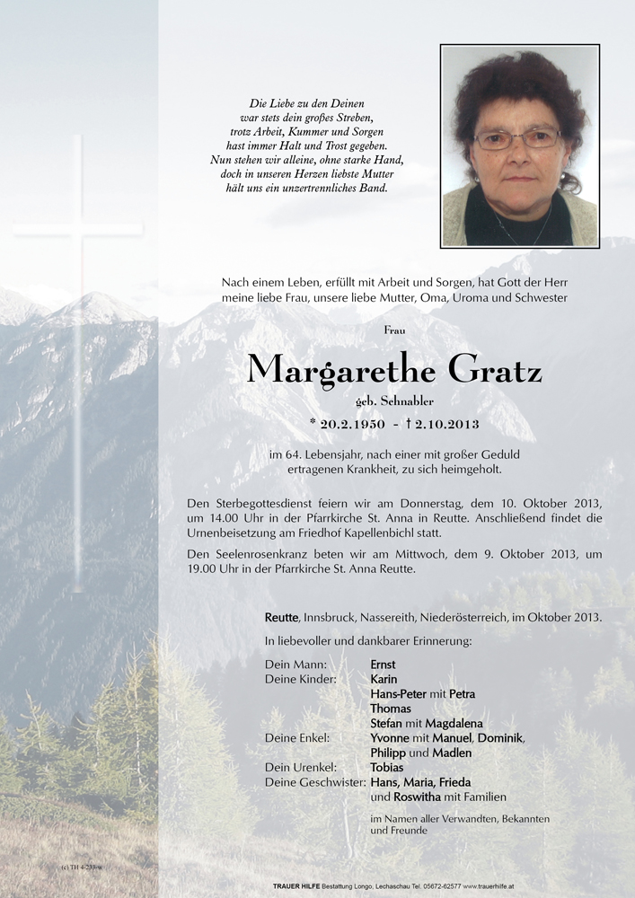 Kondolenzbuch für Margarethe Gratz