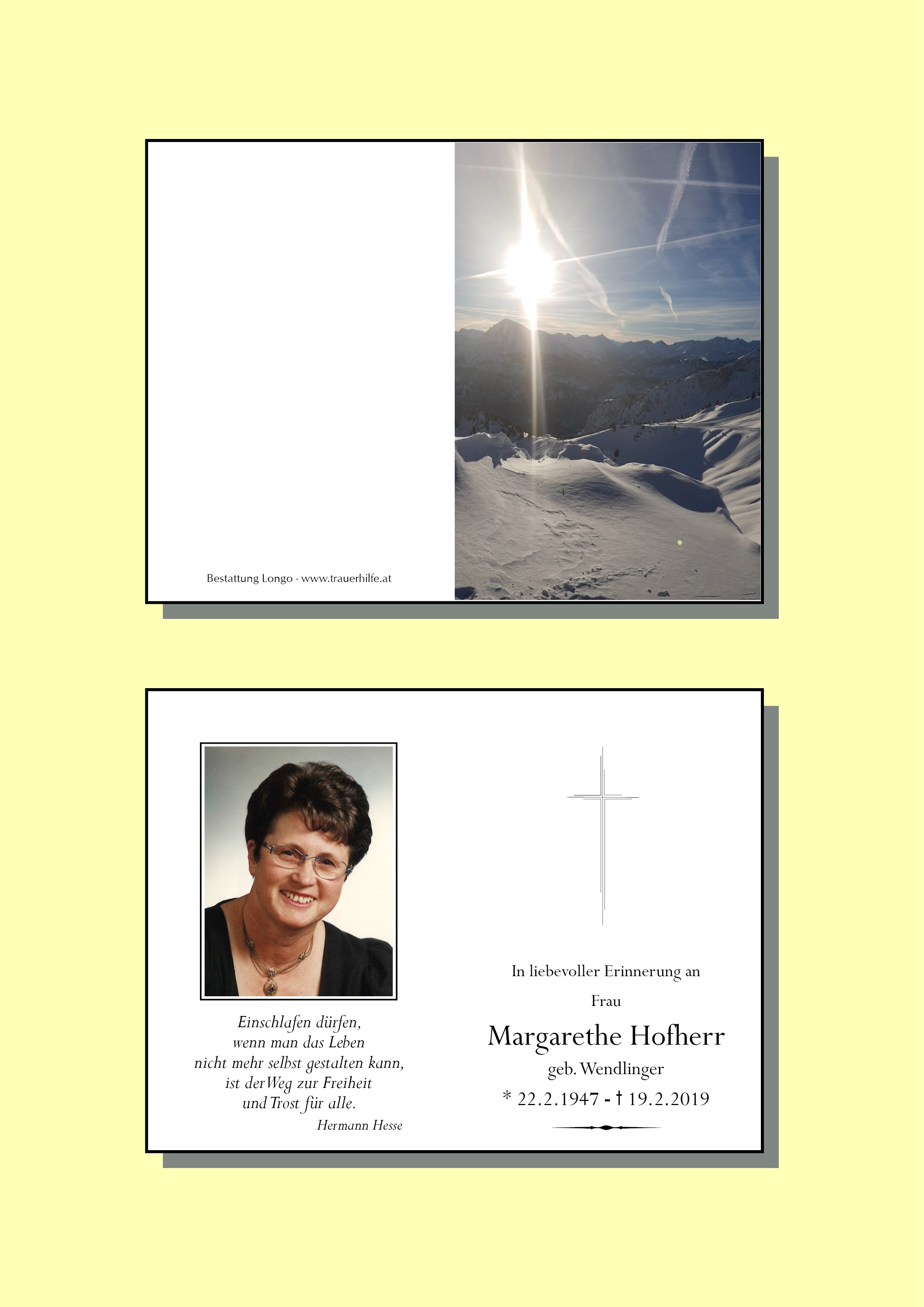 Kondolenzbuch für Margarethe Hofherr