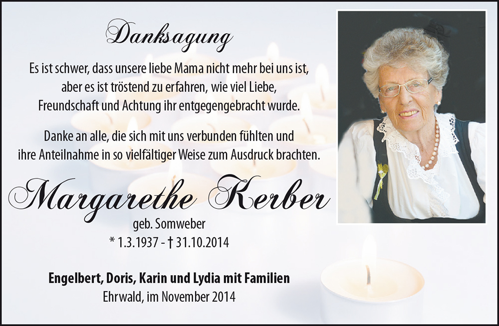 Gedenkkerzen für Margarethe Kerber