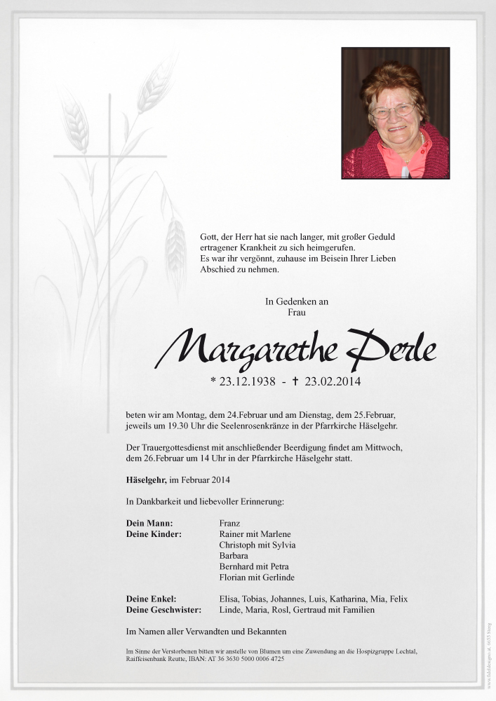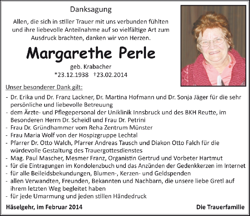 Kondolenzbuch für Margarethe Perle