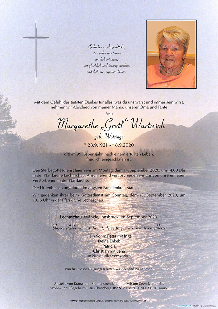 Kondolenzbuch für Margarethe Wartusch