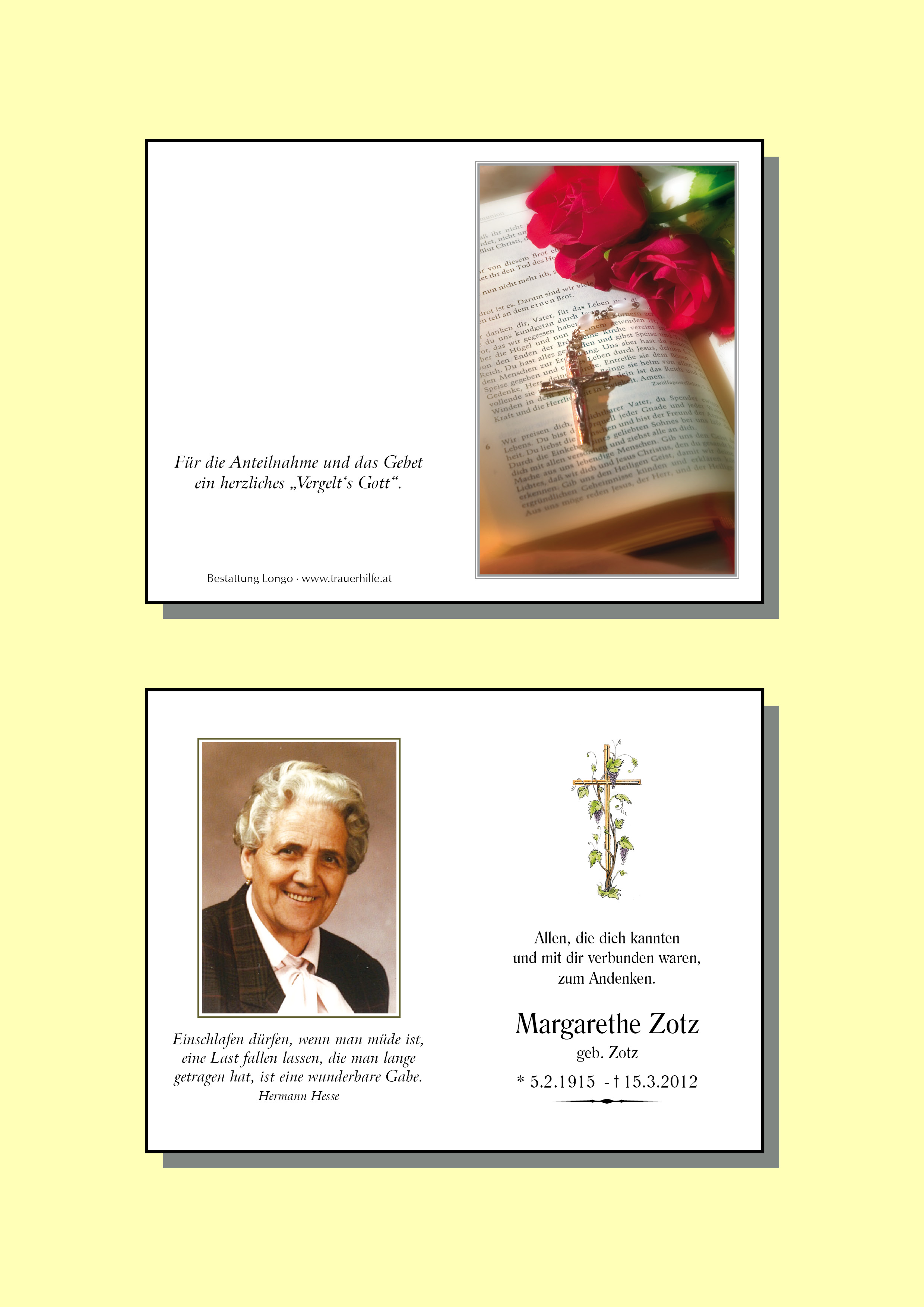 Kondolenzbuch für Margarethe Zotz
