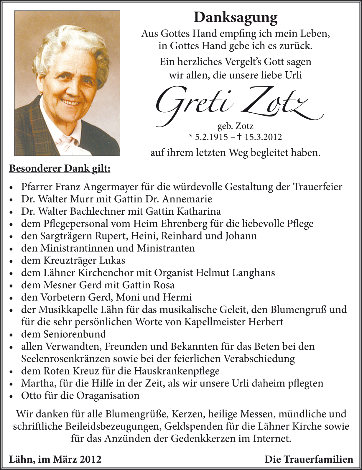 Liebe Trauerfamilien Zotz und Nagele!