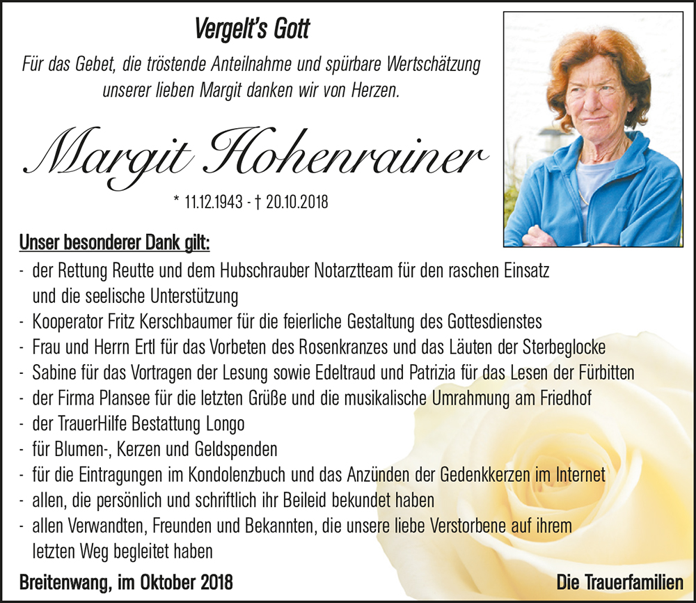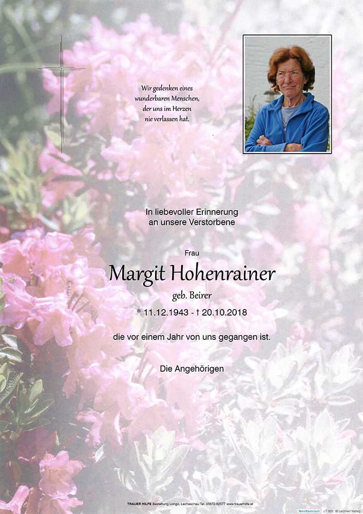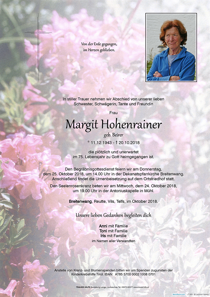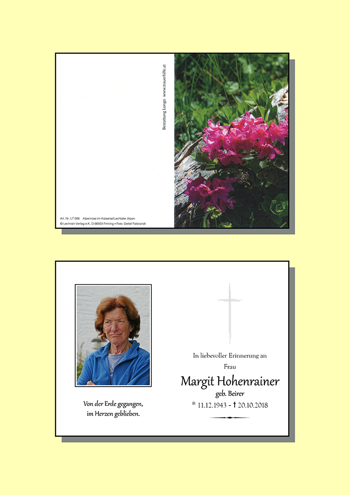 Kondolenzbuch für Margit Hohenrainer