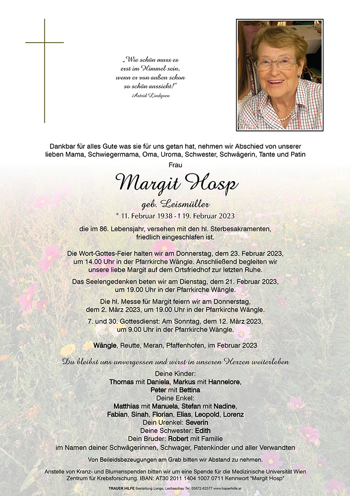Lb. Margit ruhe in FriedenHoamatl A.I.Mayr