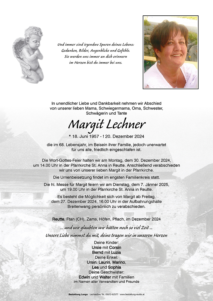 Kondolenzbuch für Margit Lechner