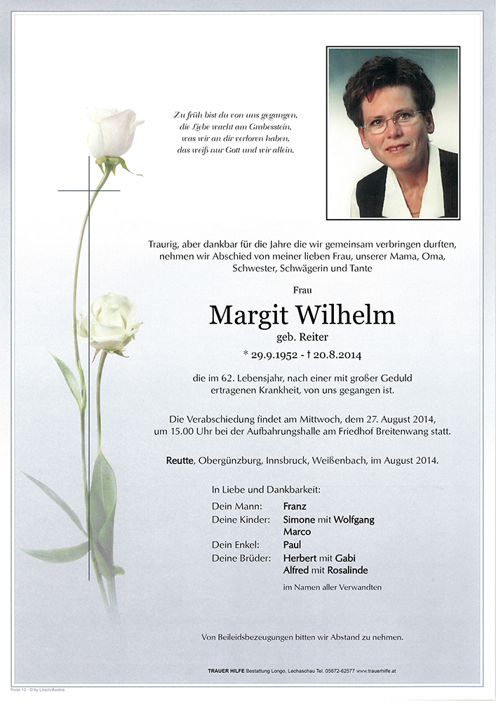 Kondolenzbuch für Margit Wilhelm