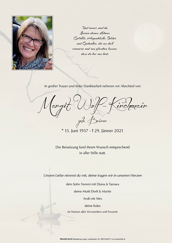 Kondolenzbuch für Margit Wolf-Kirchmair