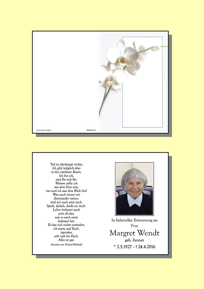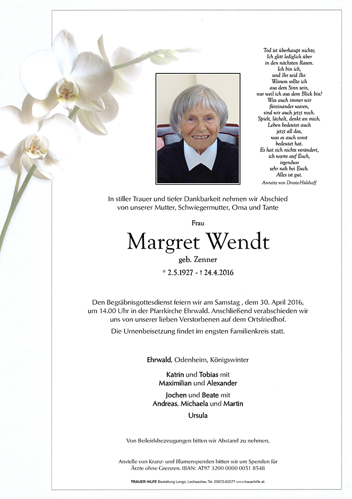Kondolenzbuch für Margret Wendt
