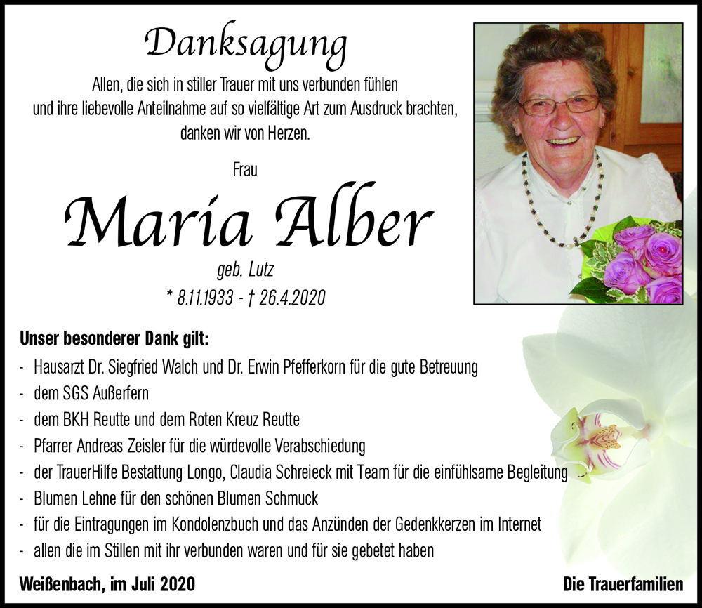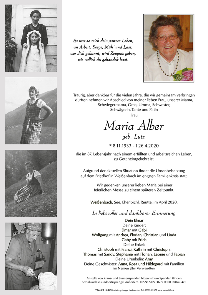 Zum ableben von Maria entbiete ich euch mein herzliches Beleidund wünsche euch viel Kraft für die schwere Zeit.