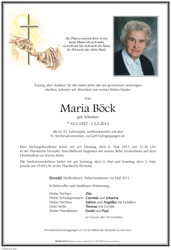 Ein langes Leben ist zu Ende gegangen. Der liebe Gott hat deine Mama von ihrem Leiden erlöst und sie heimgeholt in sein Reich. Wir wünschen dir für die kommende schwere Zeit viel Kraft, Stärke und Gottes Segen. Wir trauern mit dir Gerlinde und Hansi