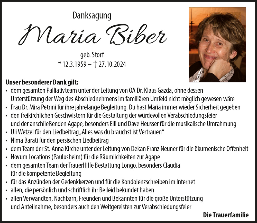 wir möchten unser tiefes Mitgefühl zum Ableben von Maria aussprechen.