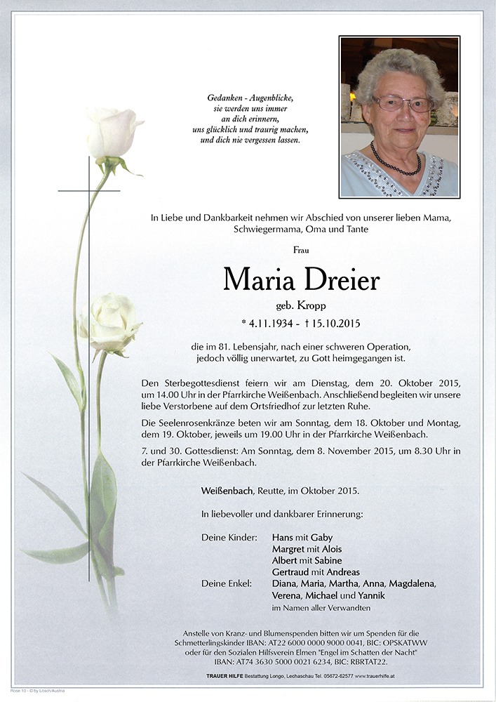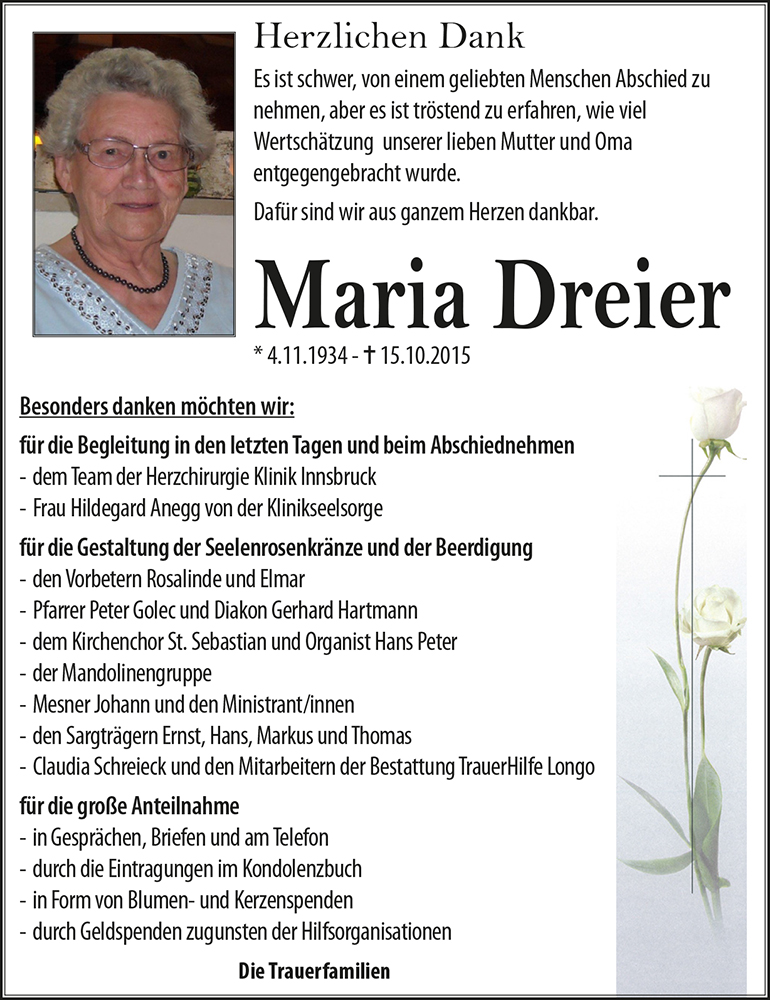Liebe Trauerfamilie Dreier !