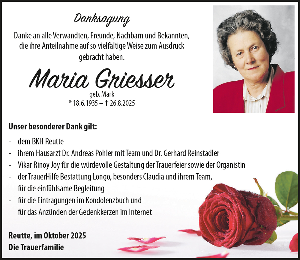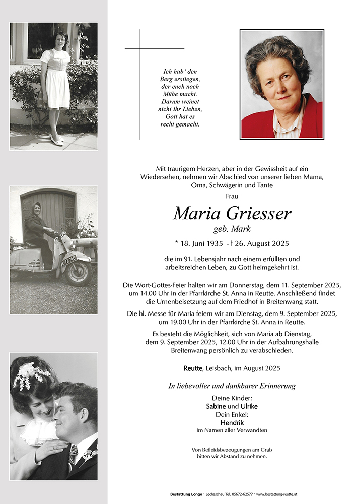 Kondolenzbuch für Maria Griesser