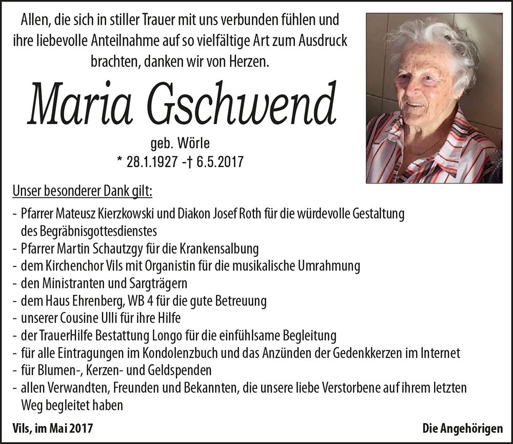 Kondolenzbuch für Maria Gschwend