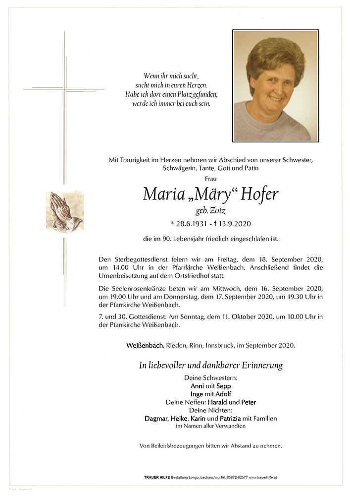 Ruhe in Frieden, liebe MäryKlaudia Schmid mit