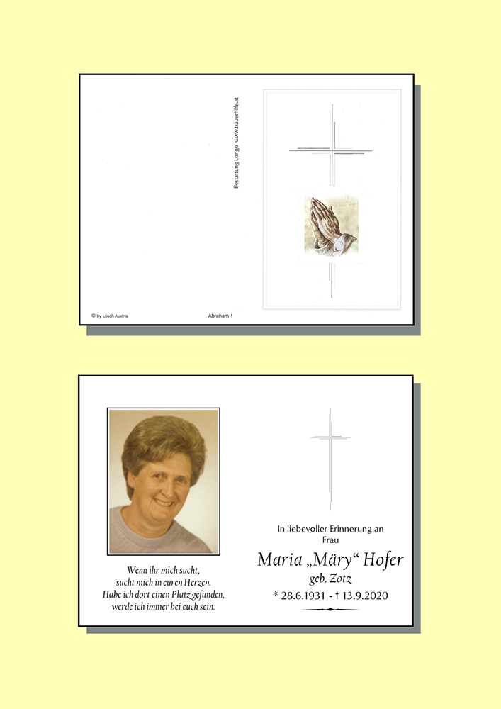 Zum Jahresgedenken Helene Sonnweber & Famili