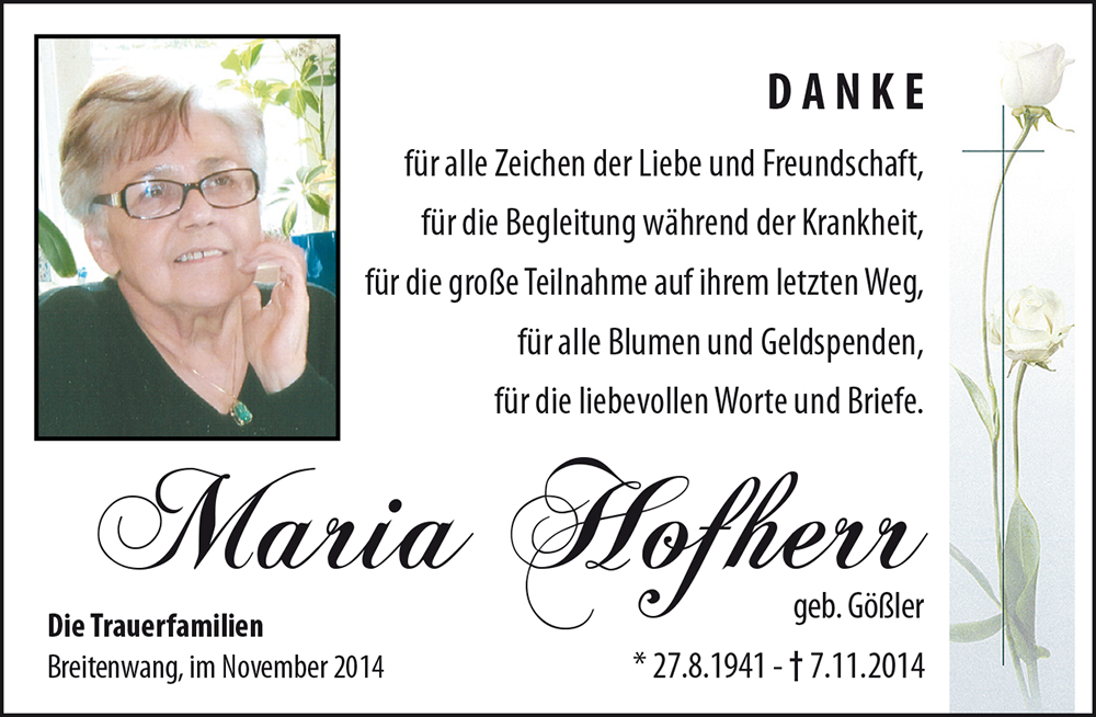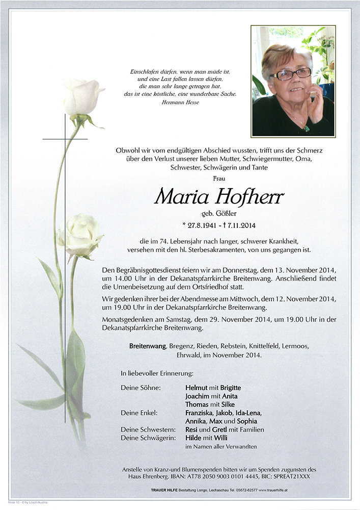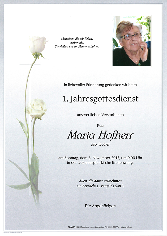 Kondolenzbuch für Maria Hofherr