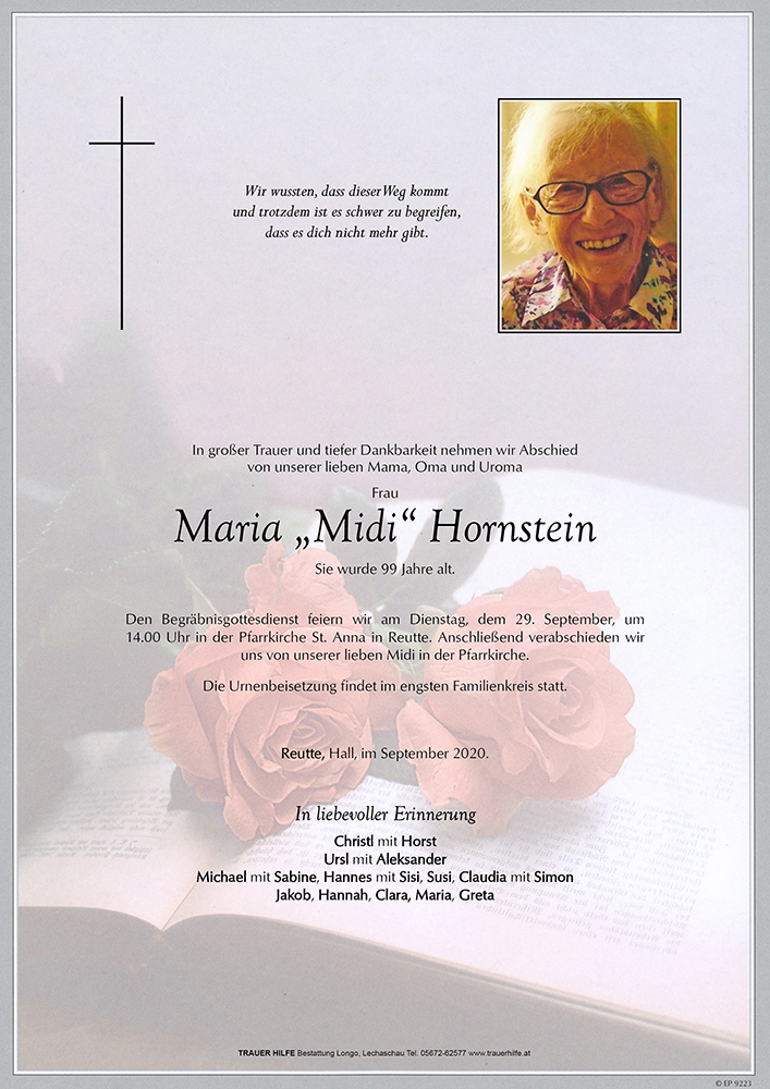 Kondolenzbuch für Maria Hornstein