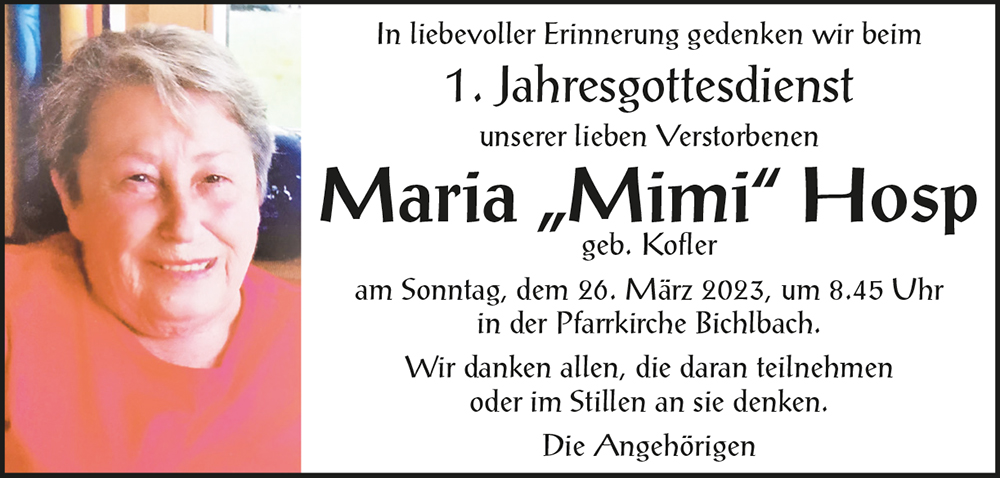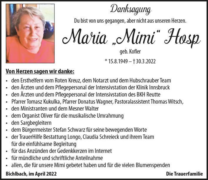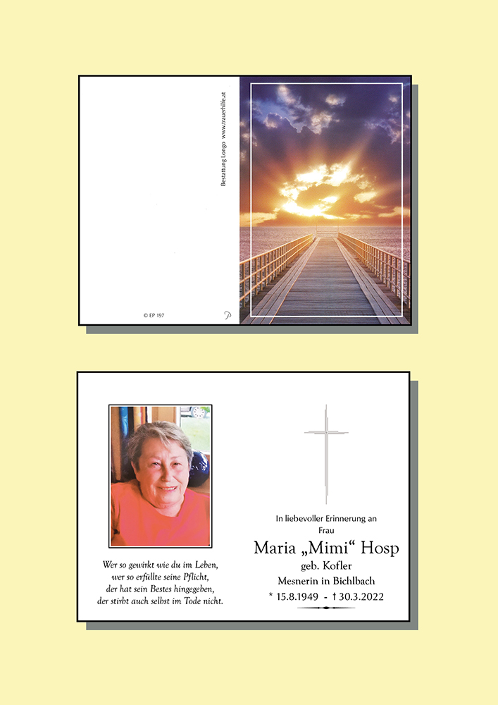 Kondolenzbuch für Maria Hosp