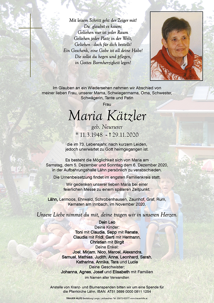 Kondolenzbuch für Maria Kätzler