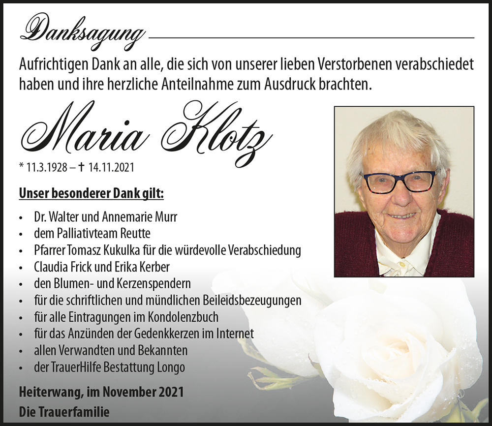 Kondolenzbuch für Maria Klotz
