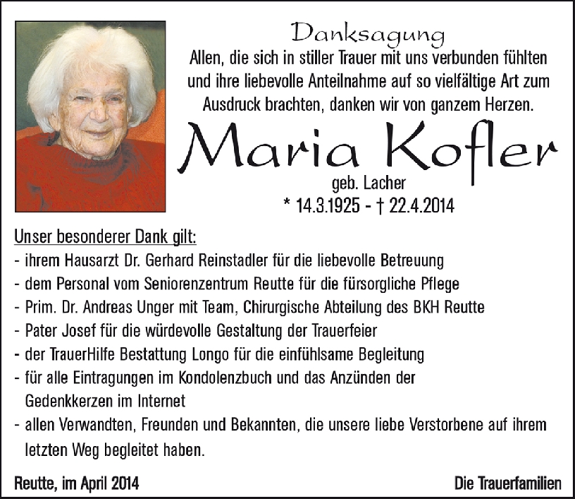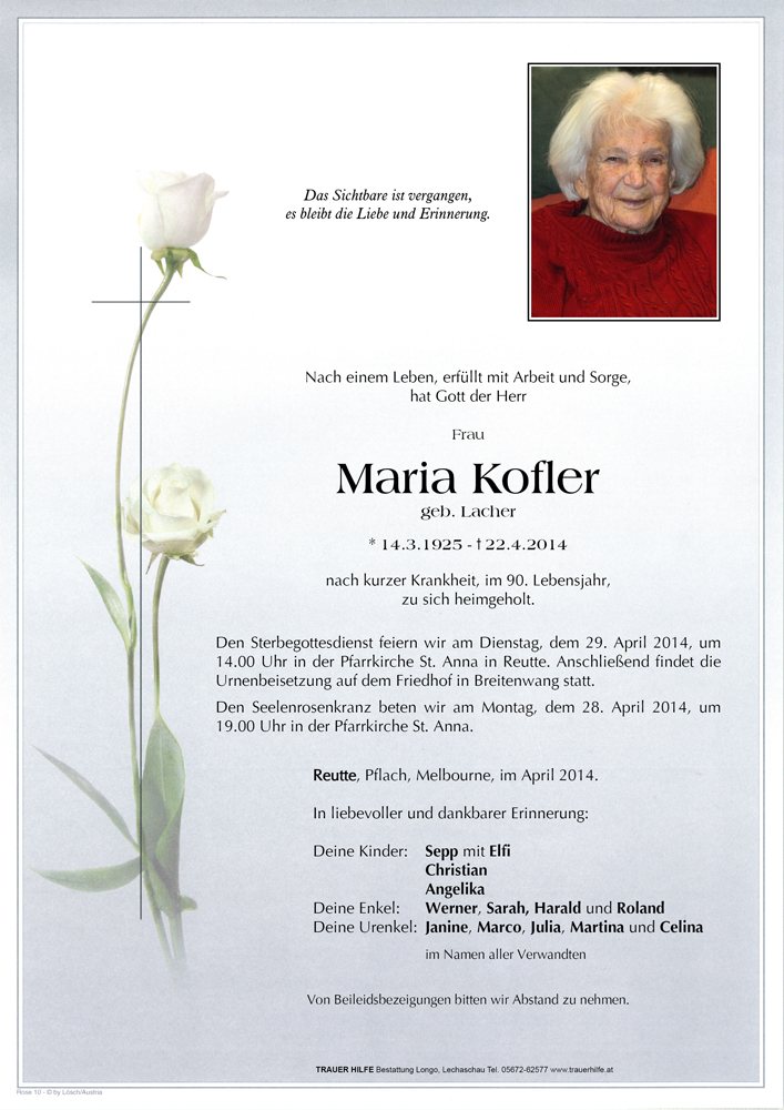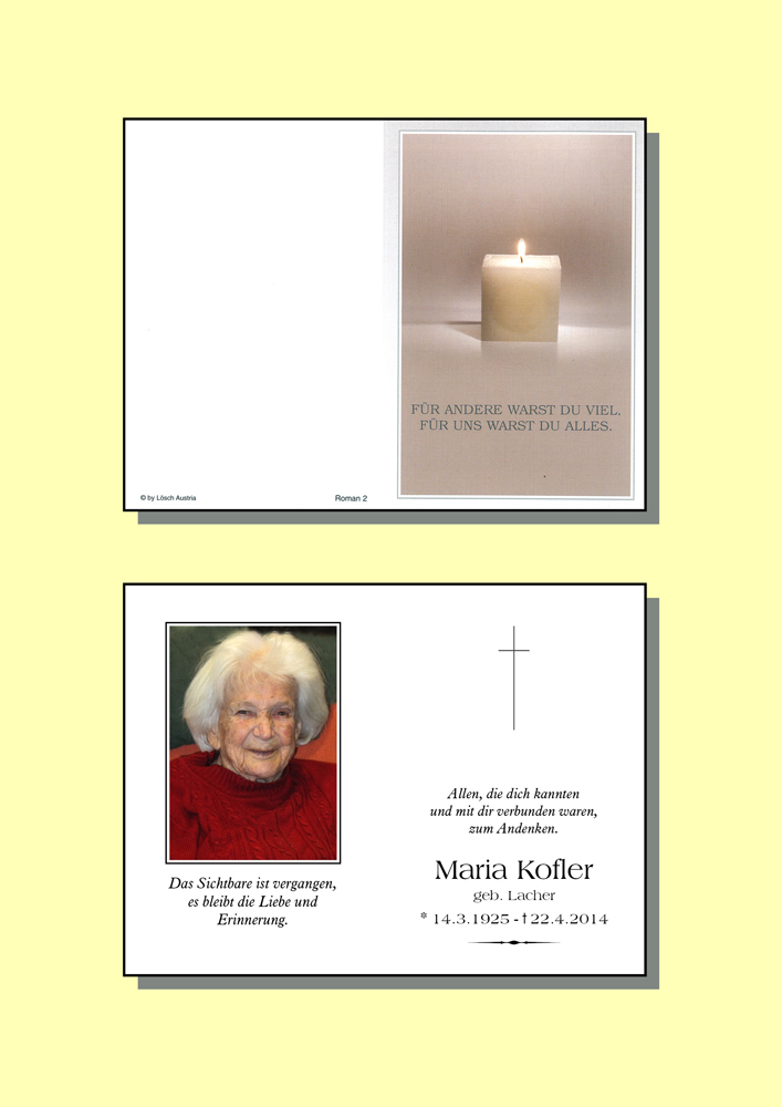 Kondolenzbuch für Maria Kofler
