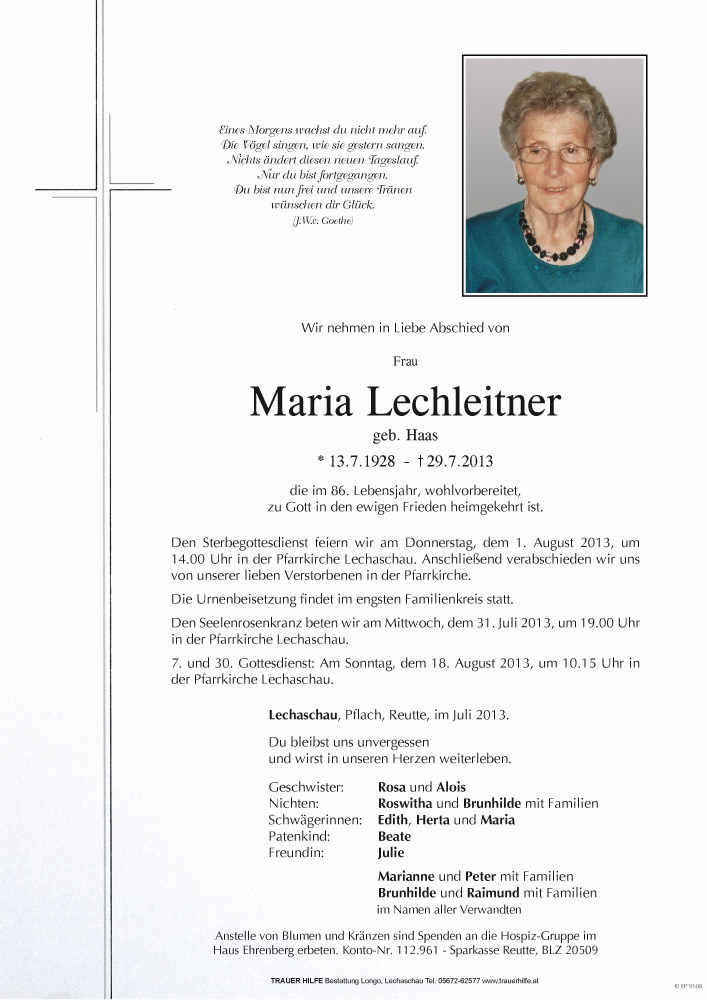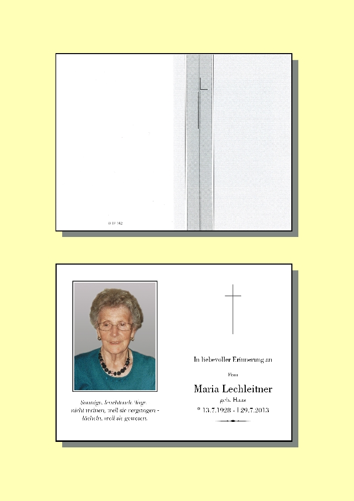 Still bist du von uns geschiedenhin ins Land der Ewigkeit.Schenke Gott dir Ruh‘ und Friedennach des Lebens Müh‘ und Leid.
