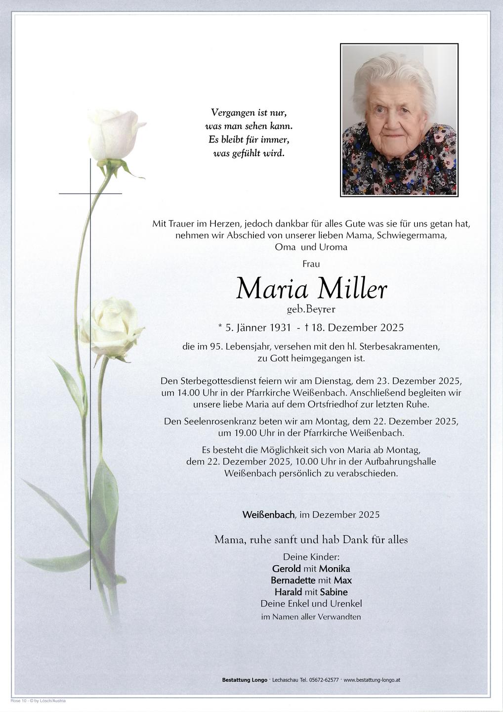 Kondolenzbuch für Maria Miller