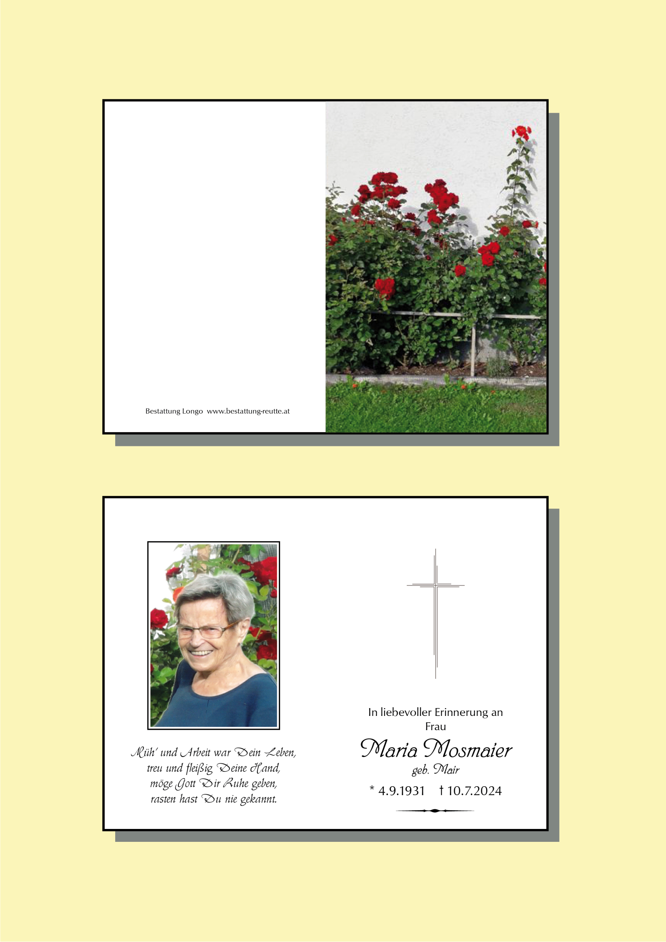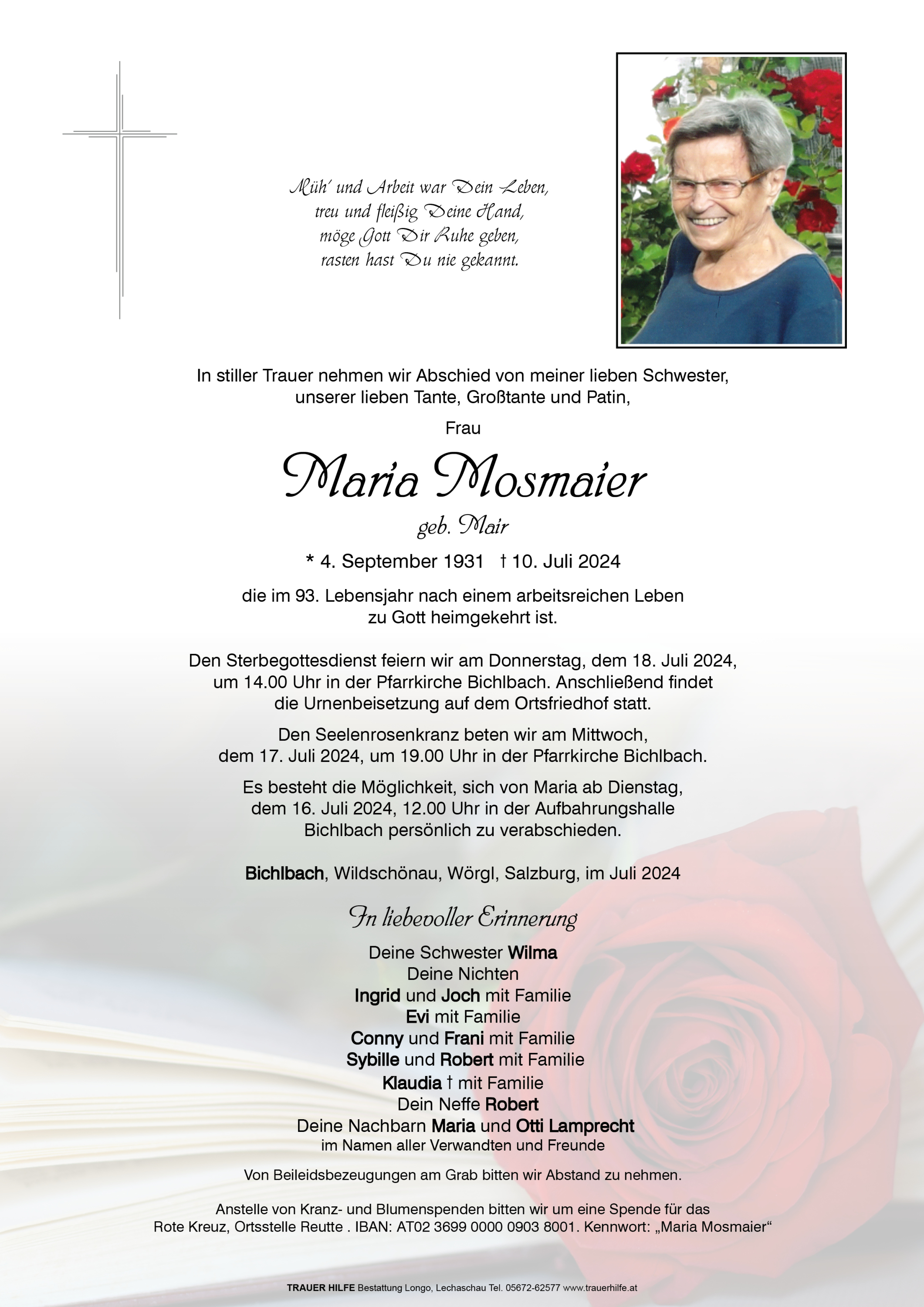 Kondolenzbuch für Maria Mosmaier