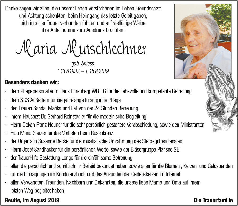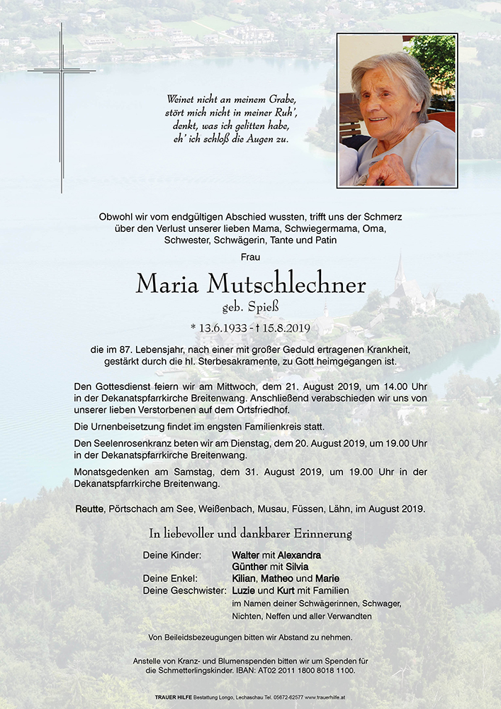 Kondolenzbuch für Maria Mutschlechner