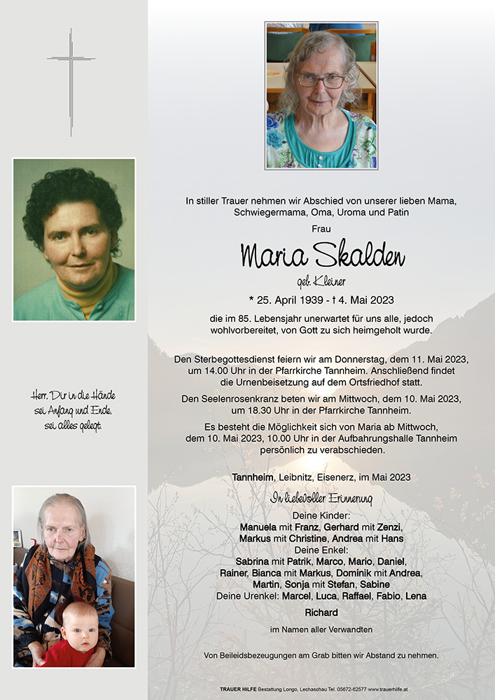 Liebe Manuela , Andrea , Gerhard und Markus mit Familien , unser herzlichstes Beileid zum schweren Verlust eurer Mutter !