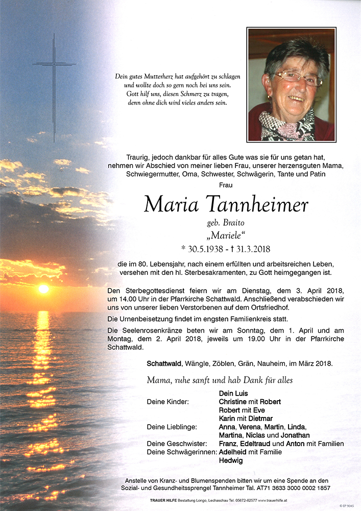 Unser aufrichtiges Beileid entbieten Marlen, Dietmar & Fabio