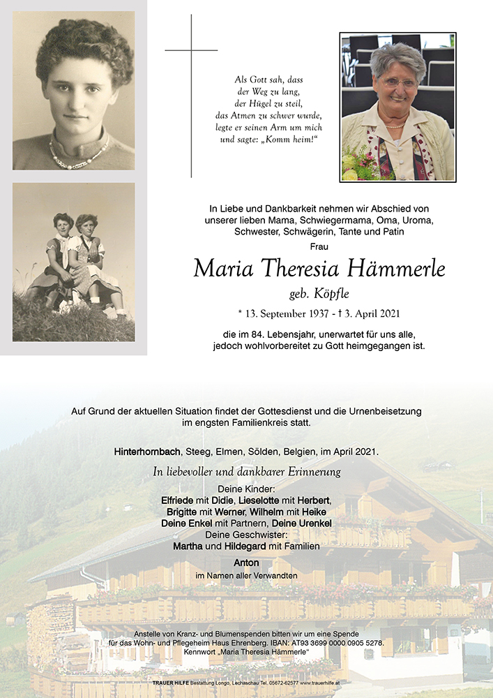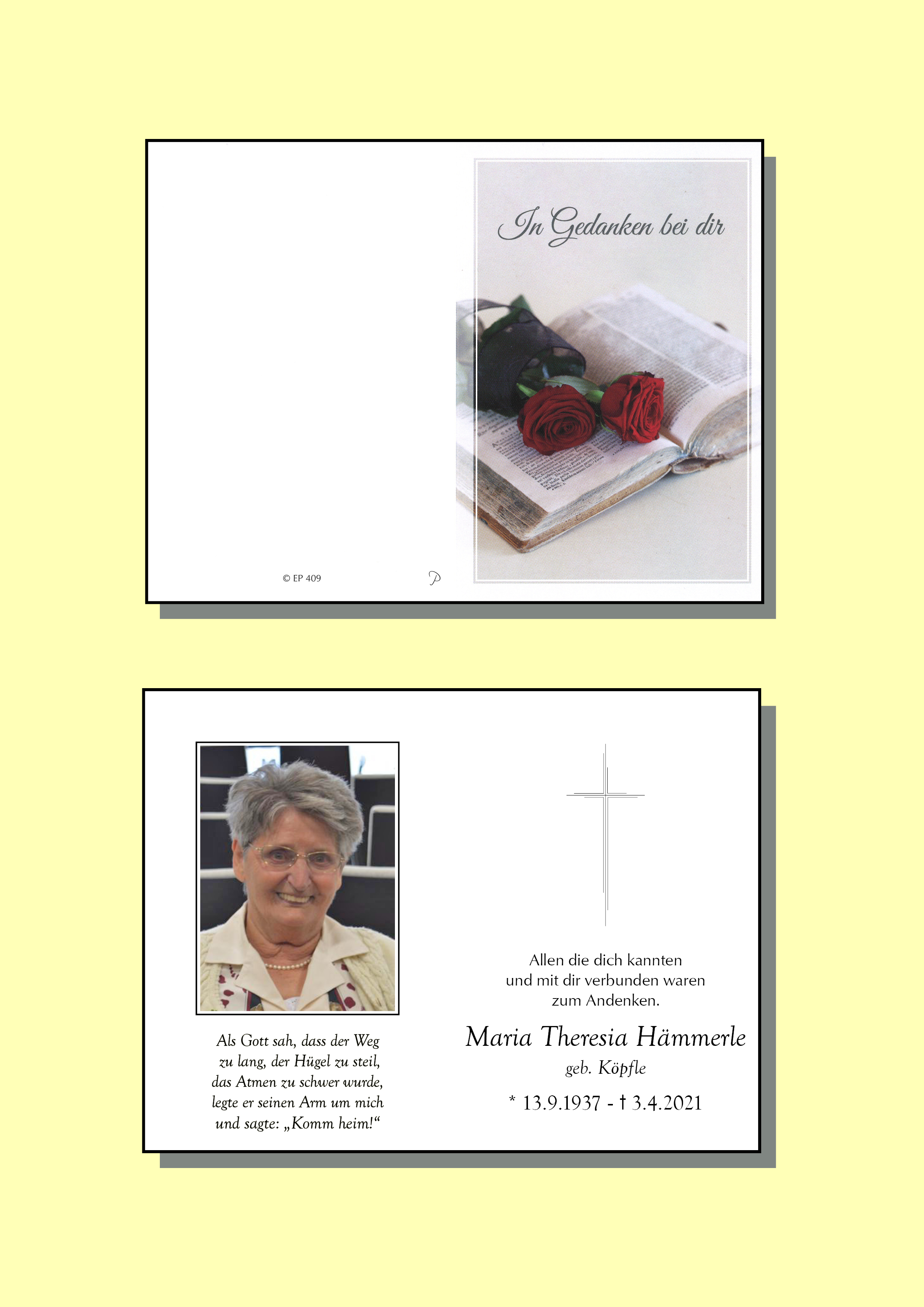 Kondolenzbuch für Maria Theresia Hämmerle