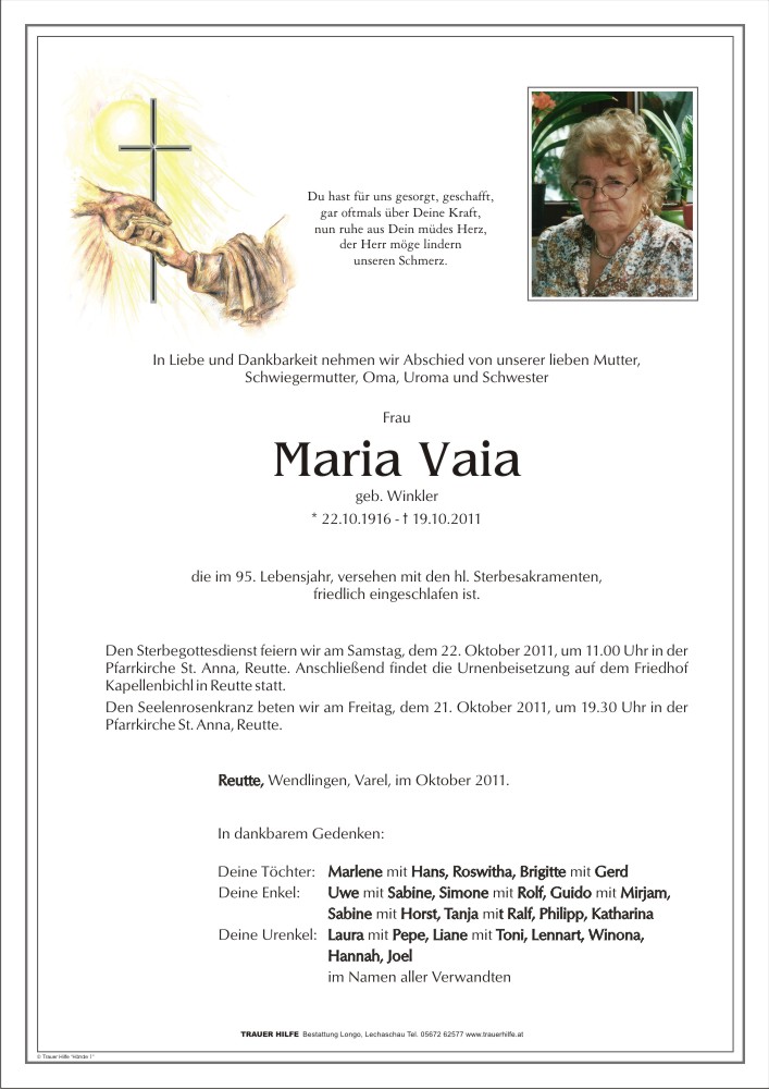 Kondolenzbuch für Maria Vaia