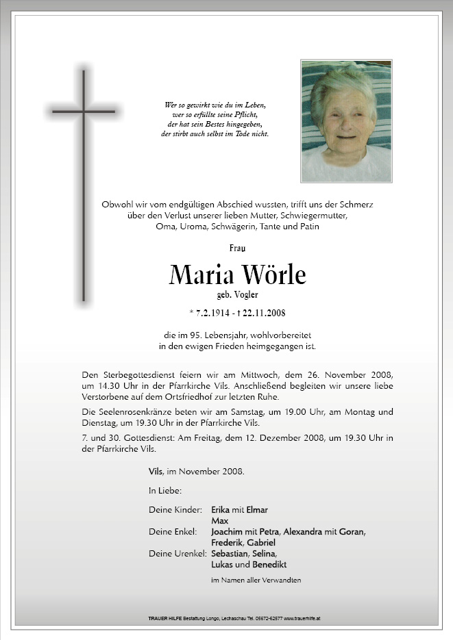 13.12.1901 22.11.2008 Vils Maria Wörle Action Parte Gedenkkerzen Kondolenzen Parte Gedenkkerzen Kondolenzen Parte herunterladen Gedenkkerzen für Maria Wörle 2 Einträge Kerze anzünden Hallo Oma Liebe Oma Ihre Gedenkkerze fürMaria Wörle Ihr Name* Farbe auswählen Ihre Nachricht oder Name* E-Mail-Adresse* Mit dem Klicken auf "Kerze anzünden" erklären Sie sich mit unseren Datenschutzbestimmungen einverstanden. Kondolenzbuch für Maria Wörle 0 Einträge Kondolenz verfassen Ihr Abschiedsgruß an Maria Wörle Ihr Name* E-Mail-Adresse* Ihre Nachricht* Mit dem Klicken auf "Gruß absenden" erklären Sie sich mit unseren Datenschutzbestimmungen einverstanden.