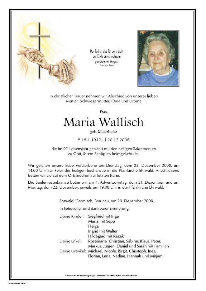 13.12.1901 20.12.2008 Ehrwald Maria Wallisch Action Parte Gedenkkerzen Kondolenzen Parte Gedenkkerzen Kondolenzen Parte herunterladen Gedenkkerzen für Maria Wallisch 4 Einträge Kerze anzünden RIP In stillem Gedenken Sarah Ihre Gedenkkerze fürMaria Wallisch Ihr Name* Farbe auswählen Ihre Nachricht oder Name* E-Mail-Adresse* Mit dem Klicken auf "Kerze anzünden" erklären Sie sich mit unseren Datenschutzbestimmungen einverstanden. Kondolenzbuch für Maria Wallisch 0 Einträge Kondolenz verfassen Ihr Abschiedsgruß an Maria Wallisch Ihr Name* E-Mail-Adresse* Ihre Nachricht* Mit dem Klicken auf "Gruß absenden" erklären Sie sich mit unseren Datenschutzbestimmungen einverstanden.