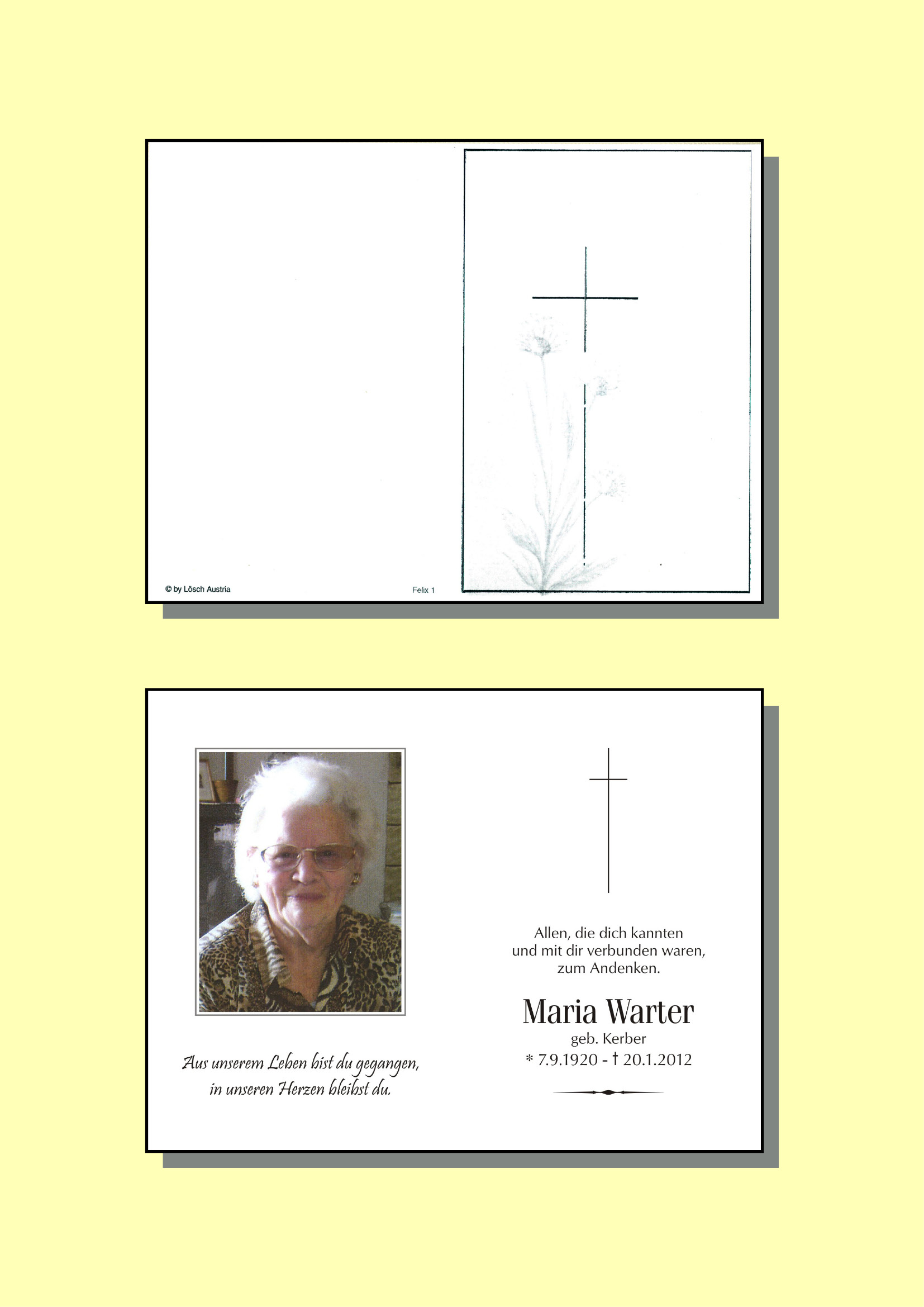 Kondolenzbuch für Maria Warter