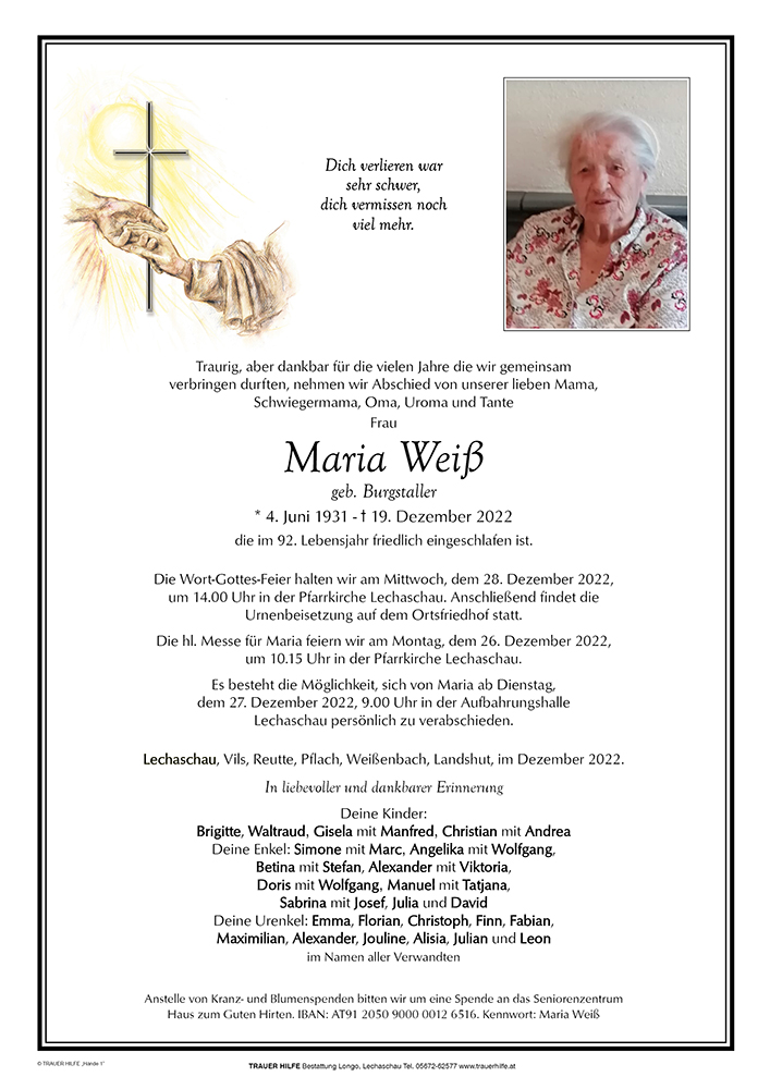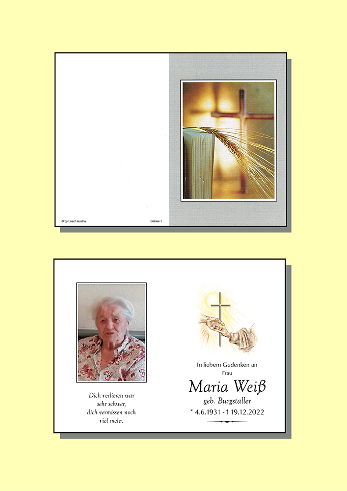 Maria ist nicht Tod, sie ging uns nur ein Stück voraus.