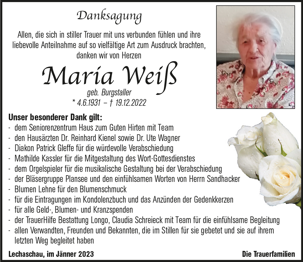 Ich durfte Maria als sehr lieben und fröhlichen Menschen kennenlernen. Sie war offen für alles und wir konnten richtig miteinander Lachen. Ich hatte sie sehr gern und werde sie nie vergessen-so wie sie mich nie vergaß.