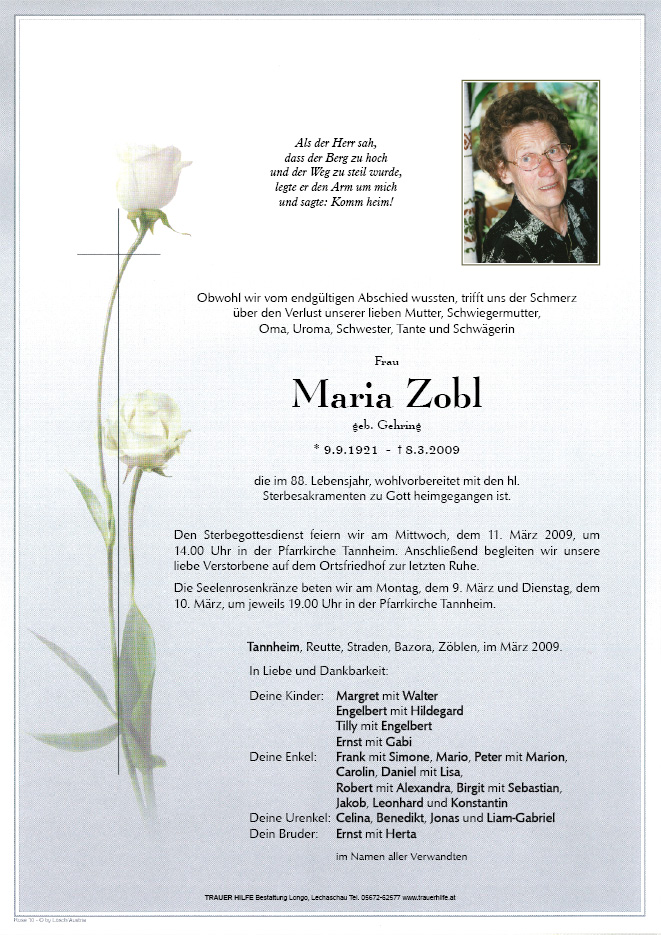 13.12.1901 08.03.2009 Tannheim Maria Zobl Action Parte Gedenkkerzen Kondolenzen Parte Gedenkkerzen Kondolenzen Parte herunterladen Gedenkkerzen für Maria Zobl 4 Einträge Kerze anzünden Bella Bella Bella Ruhe in Frieden Ihre Gedenkkerze fürMaria Zobl Ihr Name* Farbe auswählen Ihre Nachricht oder Name* E-Mail-Adresse* Mit dem Klicken auf "Kerze anzünden" erklären Sie sich mit unseren Datenschutzbestimmungen einverstanden. Kondolenzbuch für Maria Zobl 0 Einträge Kondolenz verfassen Ihr Abschiedsgruß an Maria Zobl Ihr Name* E-Mail-Adresse* Ihre Nachricht* Mit dem Klicken auf "Gruß absenden" erklären Sie sich mit unseren Datenschutzbestimmungen einverstanden.