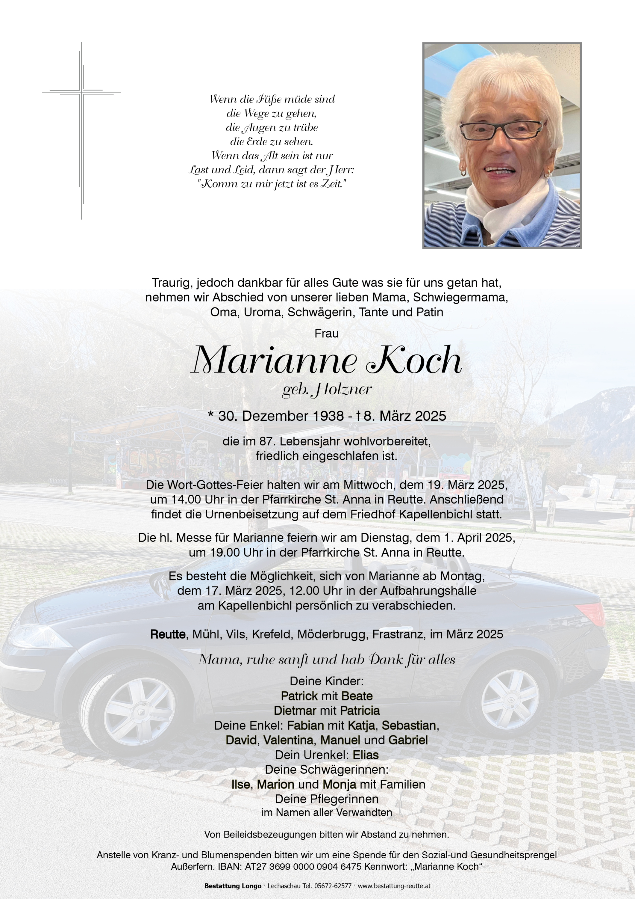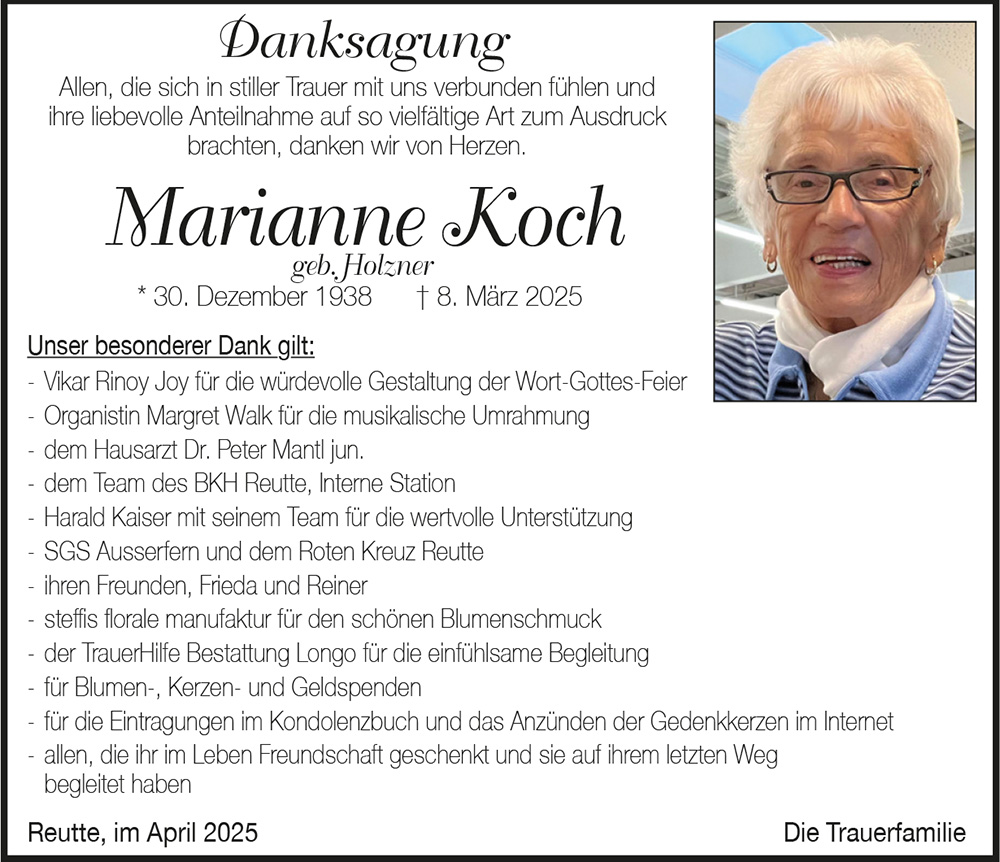 - wenn wir Dich nicht mehr auf Reuttener Spazierpfaden antreffen oder