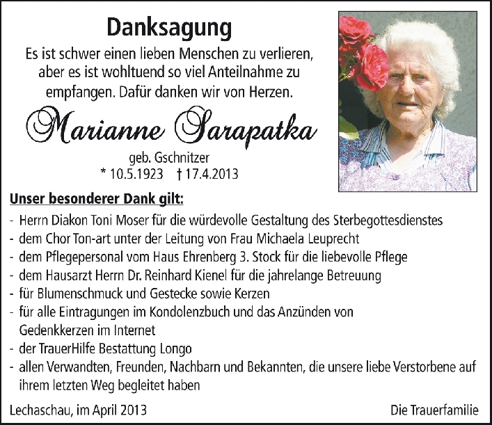 zum Ableben eurer lieben Marianne möchte ich euch mein aufrichtiges Beileid ausdrücken.