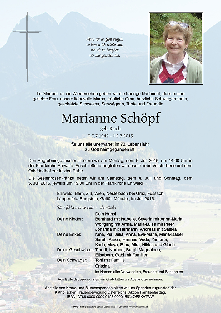 Kondolenzbuch für Marianne Schöpf
